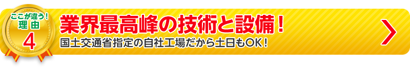 指定工場は、陸運局で行われる検査を行うことができます。従って、陸運局がお休みの土曜日や日曜日、祝日であっても車検を行うことができるのです。土日祝日でも1日で車検ができる便利な車検専門店です。